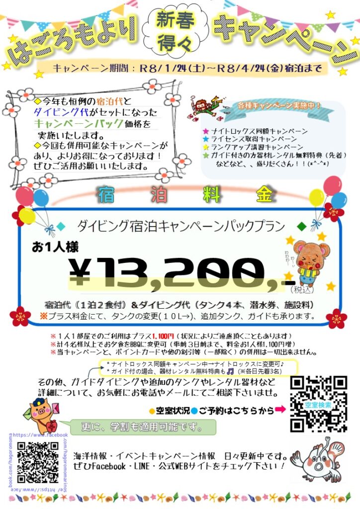 🎊 宿泊パックキャンペーン1/24~スタート! 🎉